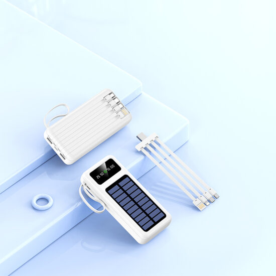 20000mAh Solar Power Bank with Detachable Cables & Digital Display – Compact, Smart, Powerful